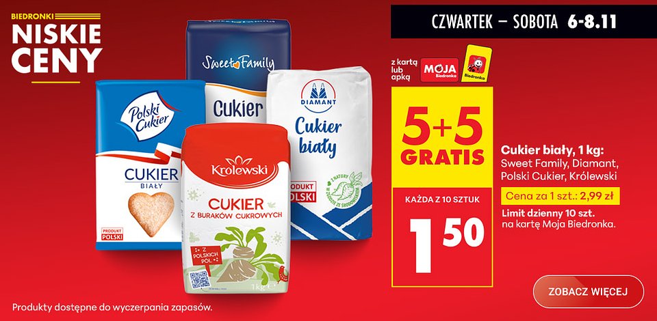 W dniach poprzedzających Święto Niepodległości ponownie wydłużamy godziny otwarcia naszych sklepów. Robimy to z myślą o klientach, którzy chcą spokojnie zaplanować zakupy na długi, rodzinny weekend – wiemy, że to dla nich ważne i że doceniają tę wygodę. Oprócz wydłużonych godzin oferujemy także wyjątkowe promocje, które pozwalają komfortowo zaopatrzyć się w ulubione produkty, w tym tradycyjne rogale świętomarcińskie, nierozerwalnie związane z 11 listopada.