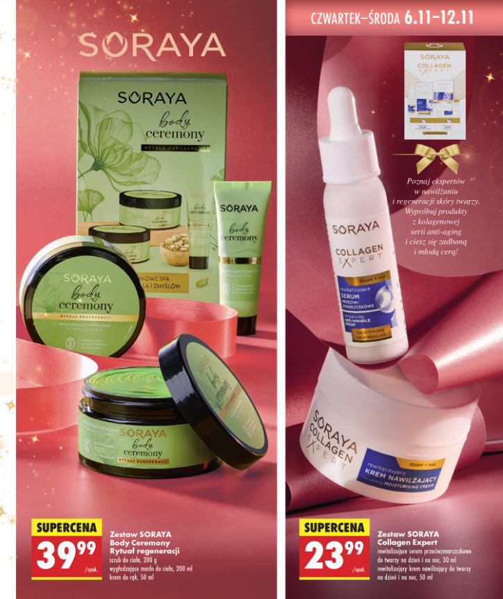 - zestaw SORAYA Collagen Expert z rewitalizującym serum (30 ml) i kremem przeciwzmarszczkowym na dzień i noc (50 ml) – w cenie 23,99 zł,