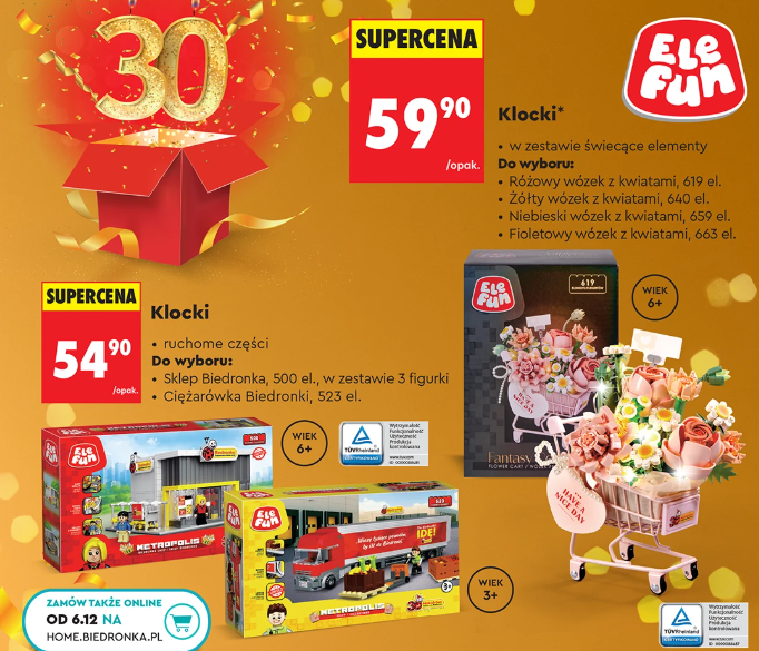 Grudzień to wyjątkowy czas, pełen radości, bliskości i obdarowywania najbliższych. W natłoku przygotowań często trudno znaleźć inspirację na odpowiedni prezent, dlatego przygotowaliśmy ofertę, która w jednym miejscu gromadzi wiele kategorii produktów w atrakcyjnych cenach. Dzięki tak szerokiemu asortymentowi nasi klienci mogą z łatwością zaplanować zakupy, mając pewność, że każdy znajdzie coś wyjątkowego dla siebie i swoich bliskich. W tym roku w ofercie dostępne są także propozycje, dzięki którym, dosłownie, można zbudować własną Biedronkę, co z pewnością dostarczy jeszcze więcej radości zarówno dzieciom, jak i dorosłym.
